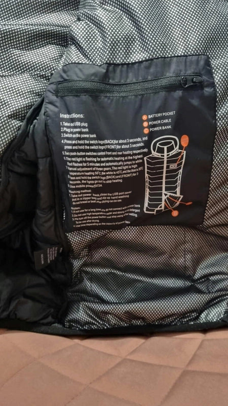 La veste est compatible avec toutes les batteries externes USB 5V standard.